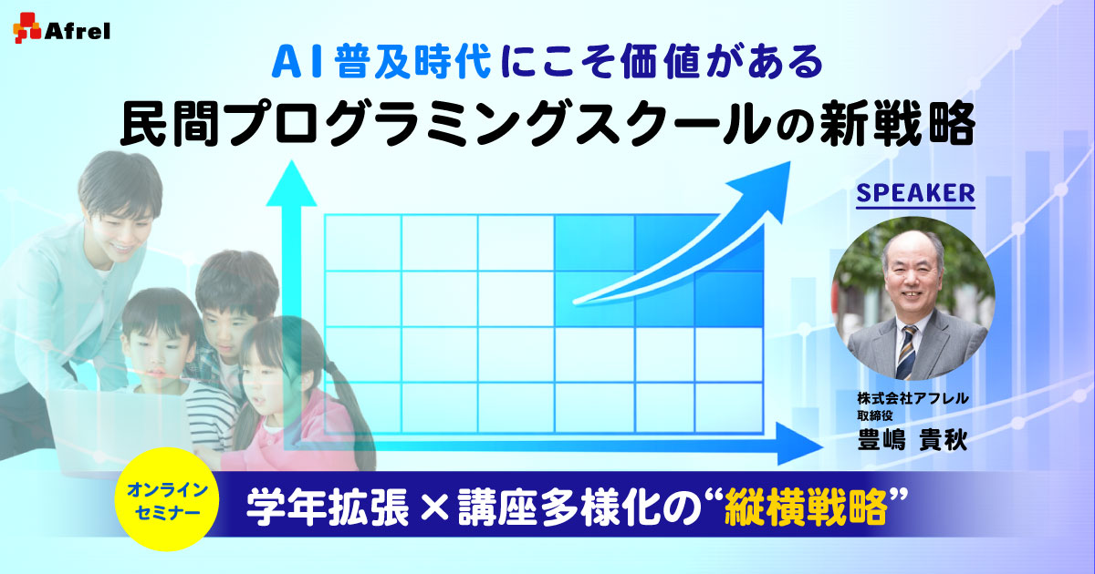 | セミナー名 | 少子化を乗り越え、AI普及時代にこそ価値がある 民間プログラミングスクールの新戦略 |